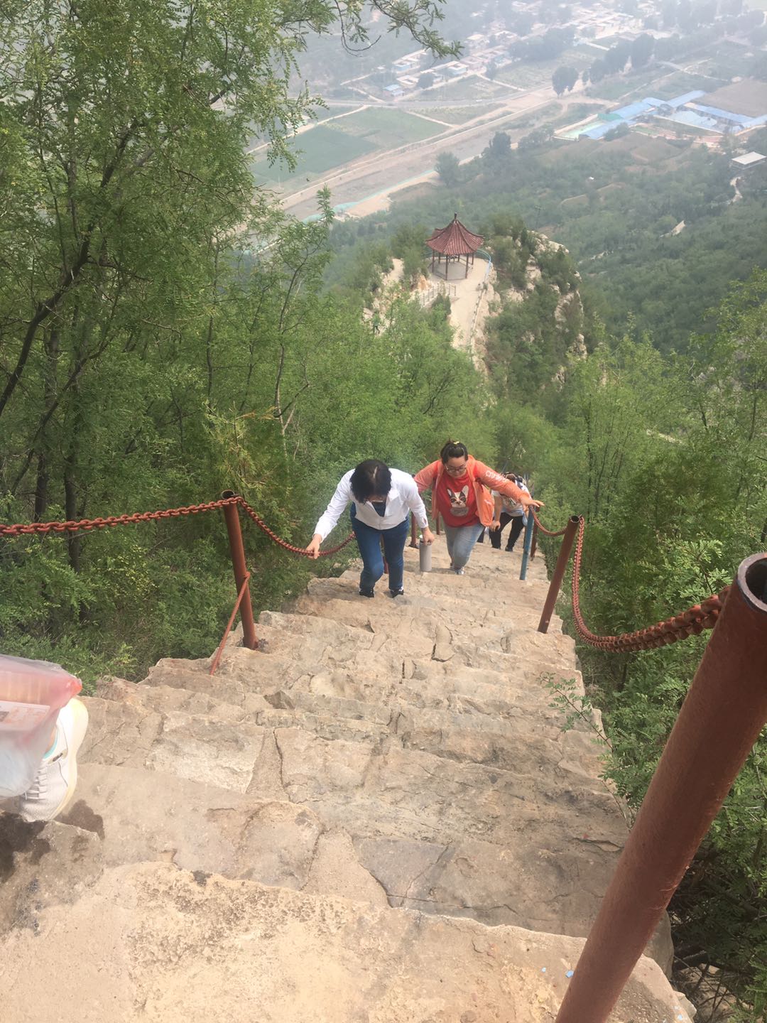 邢臺天梯山系國家AAAA級景區。山勢突兀,雄會險峻,千余級石階之上云霄。下車后,我們首先登船進金水洞,洞里非常涼爽,在船上聽著當地人的介紹,伴著著小船緩緩前進,不多時就登岸正式進入洞內。洞內有很多溶石,有的地方特別狹小,一個人要躬著身才能過去,大約行走半小時出洞后直接到了半山腰,然后開始登山。