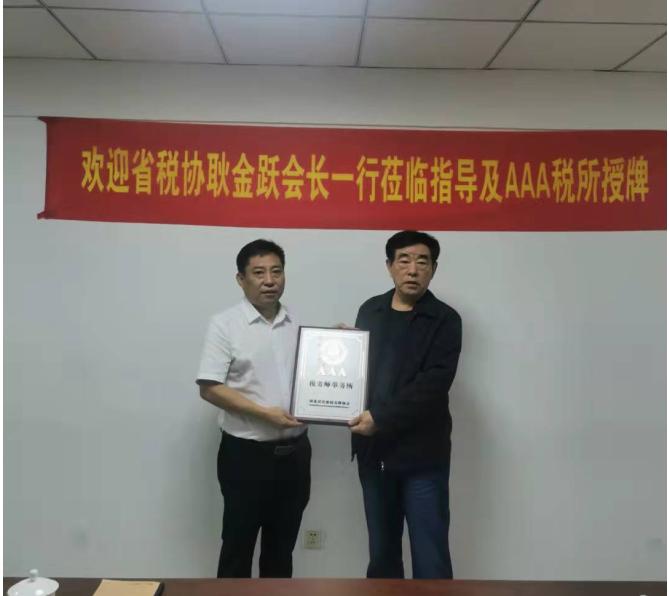 2021年9月26日,河北省稅務師協會耿金躍會長一行三人蒞臨我所指導工作和AAA稅務師事務所授牌。