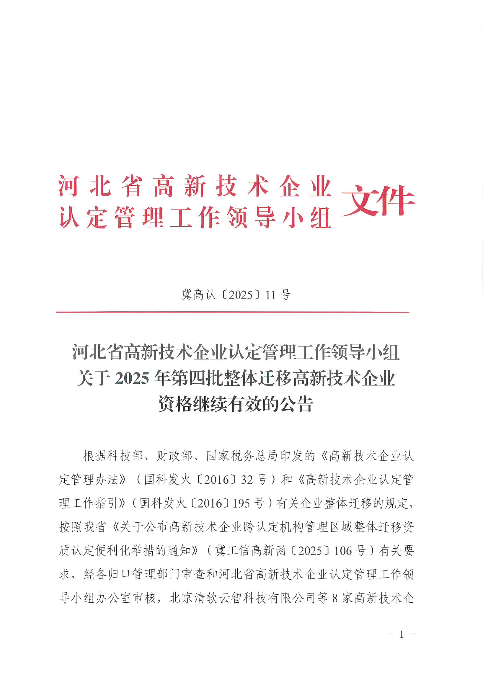 關于2025年第四批整體遷移高新技術企業(yè)資格繼續(xù)有效的公告