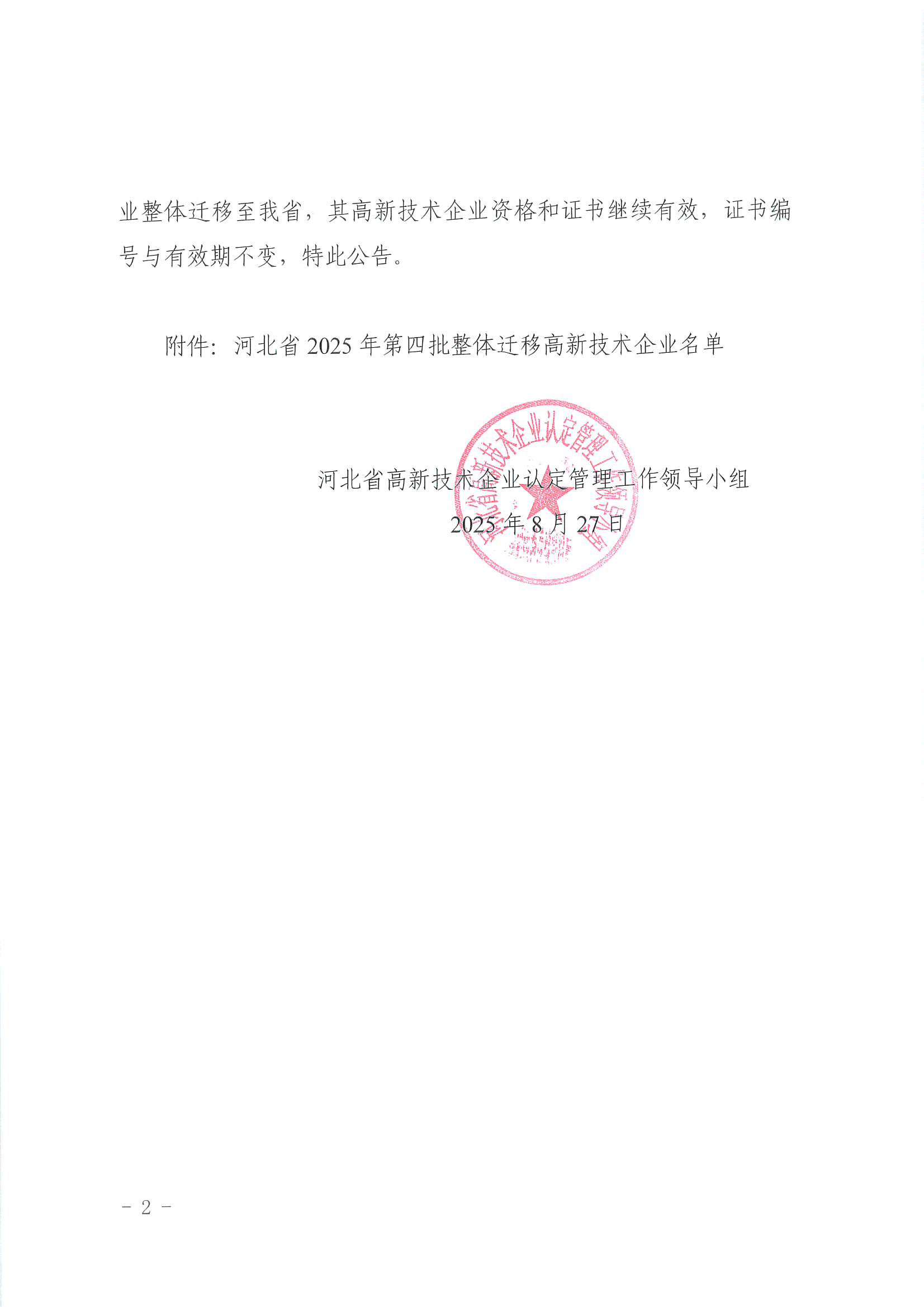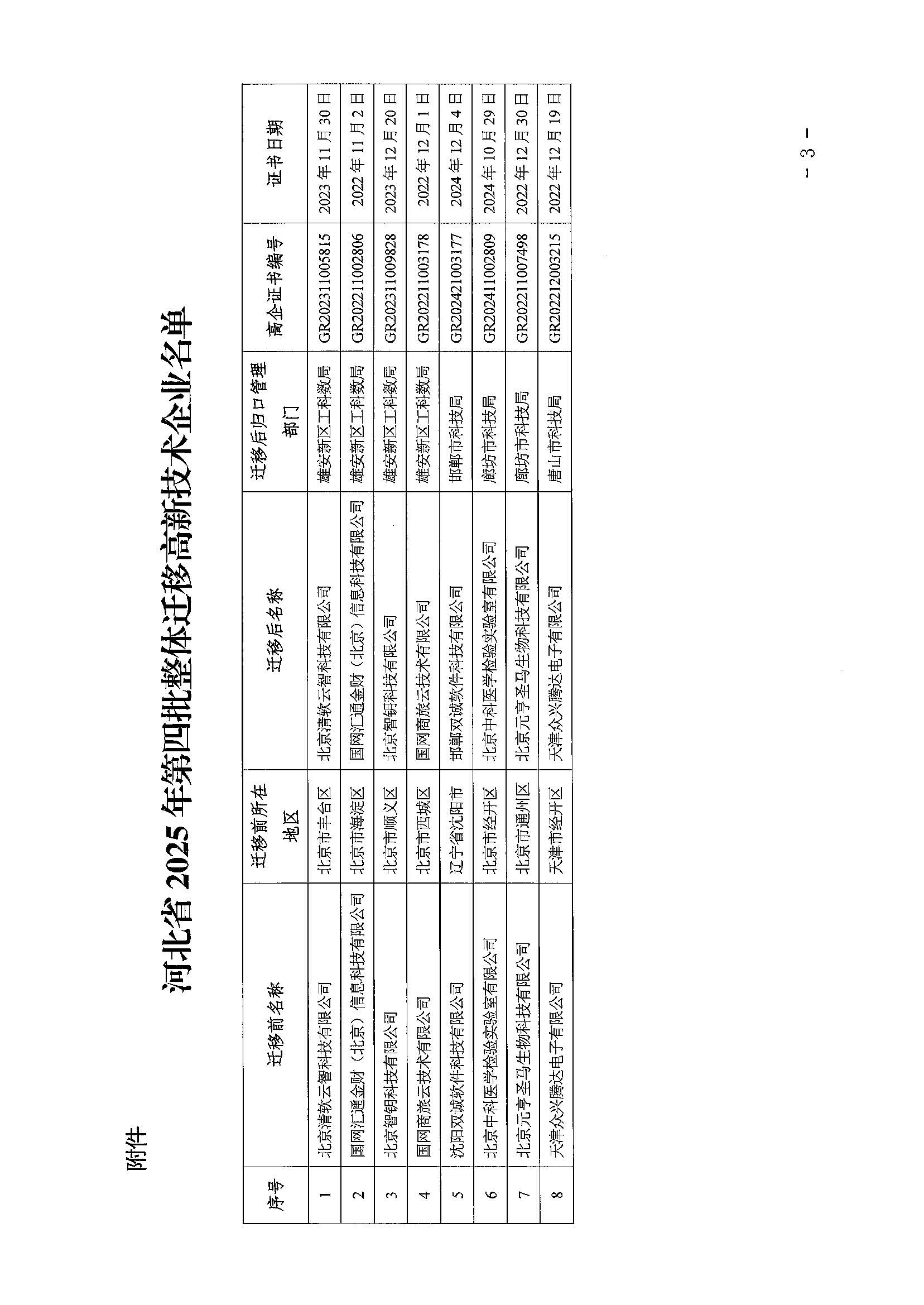 關于公布河北省2025年第三批更名及重大變化高新技術企業(yè)的通知